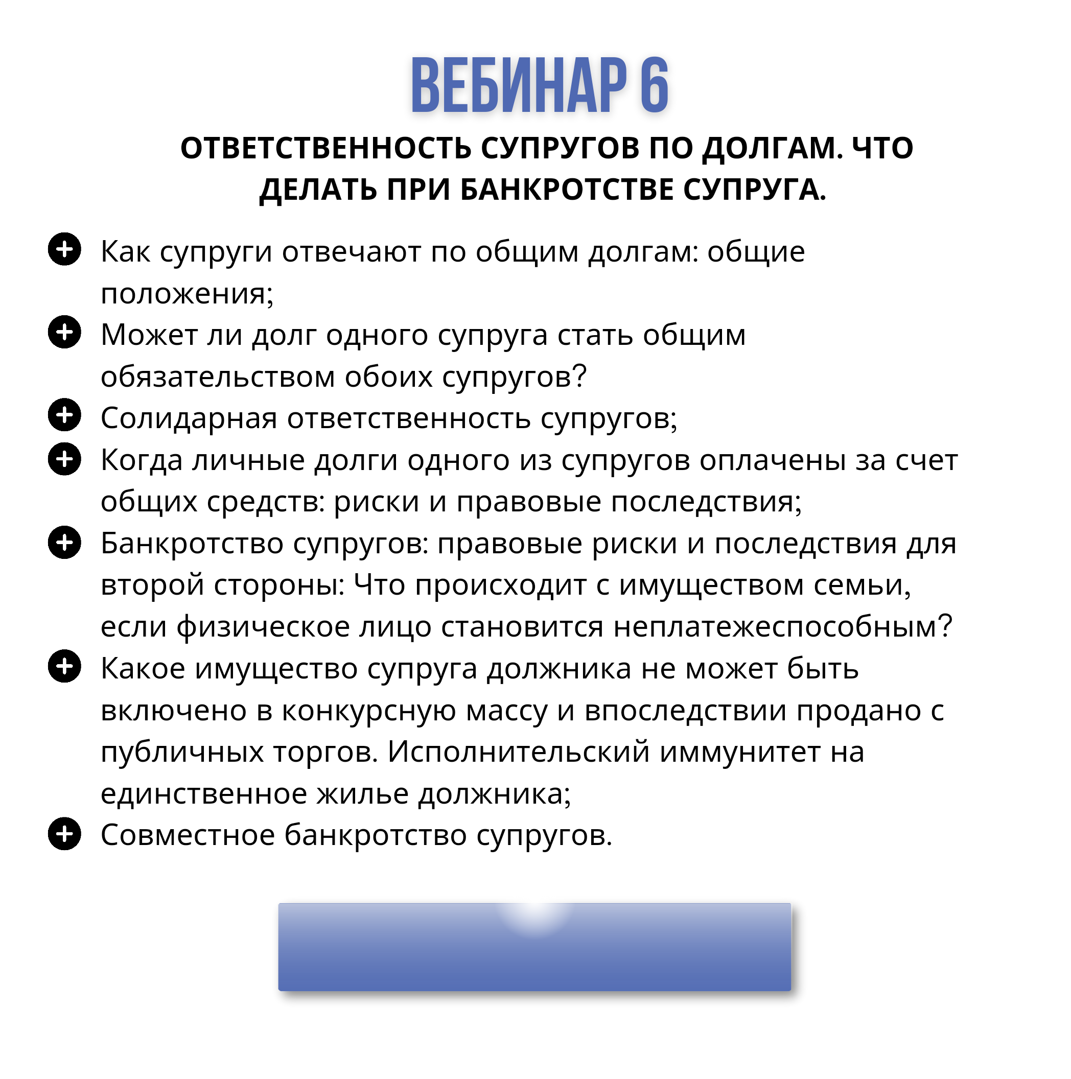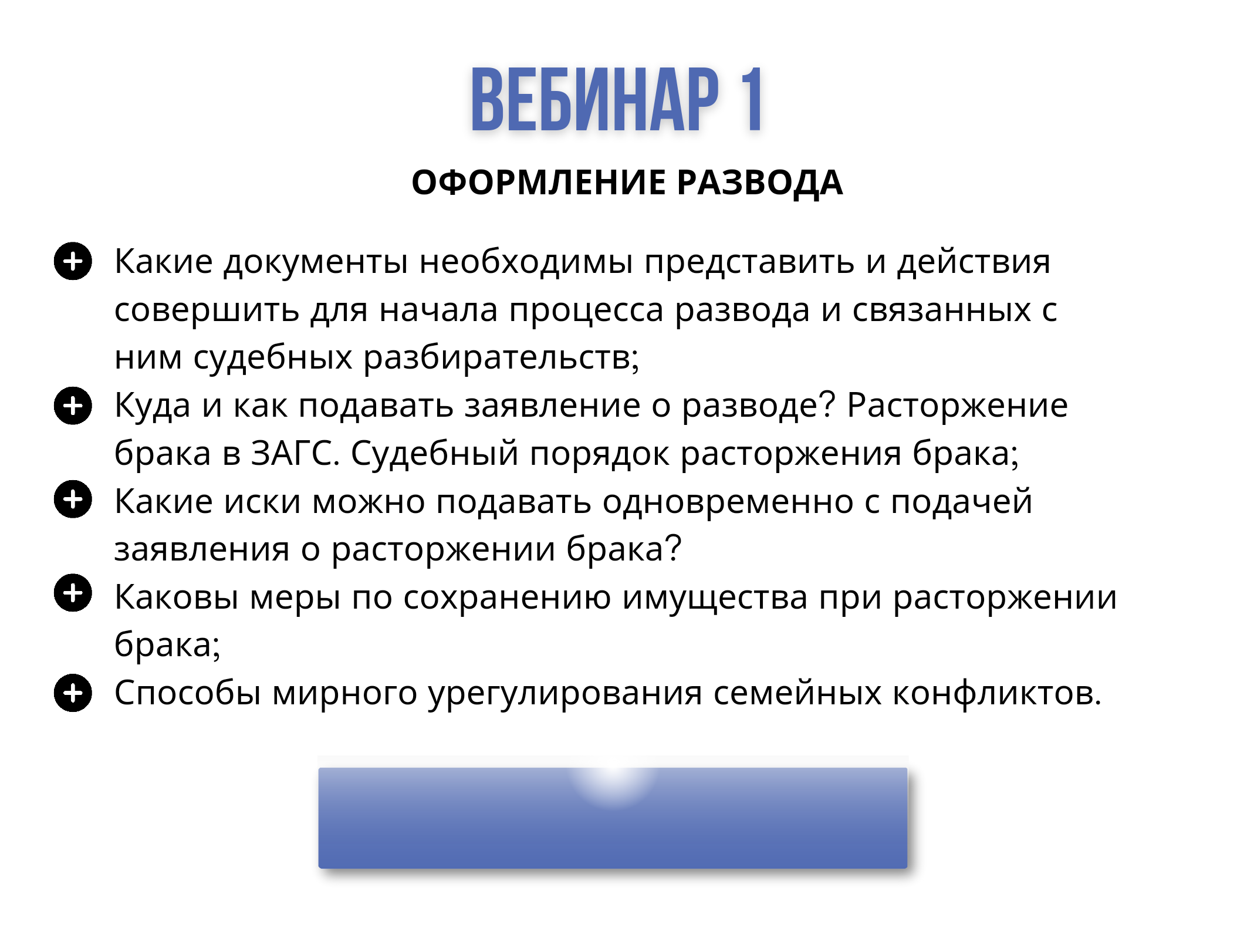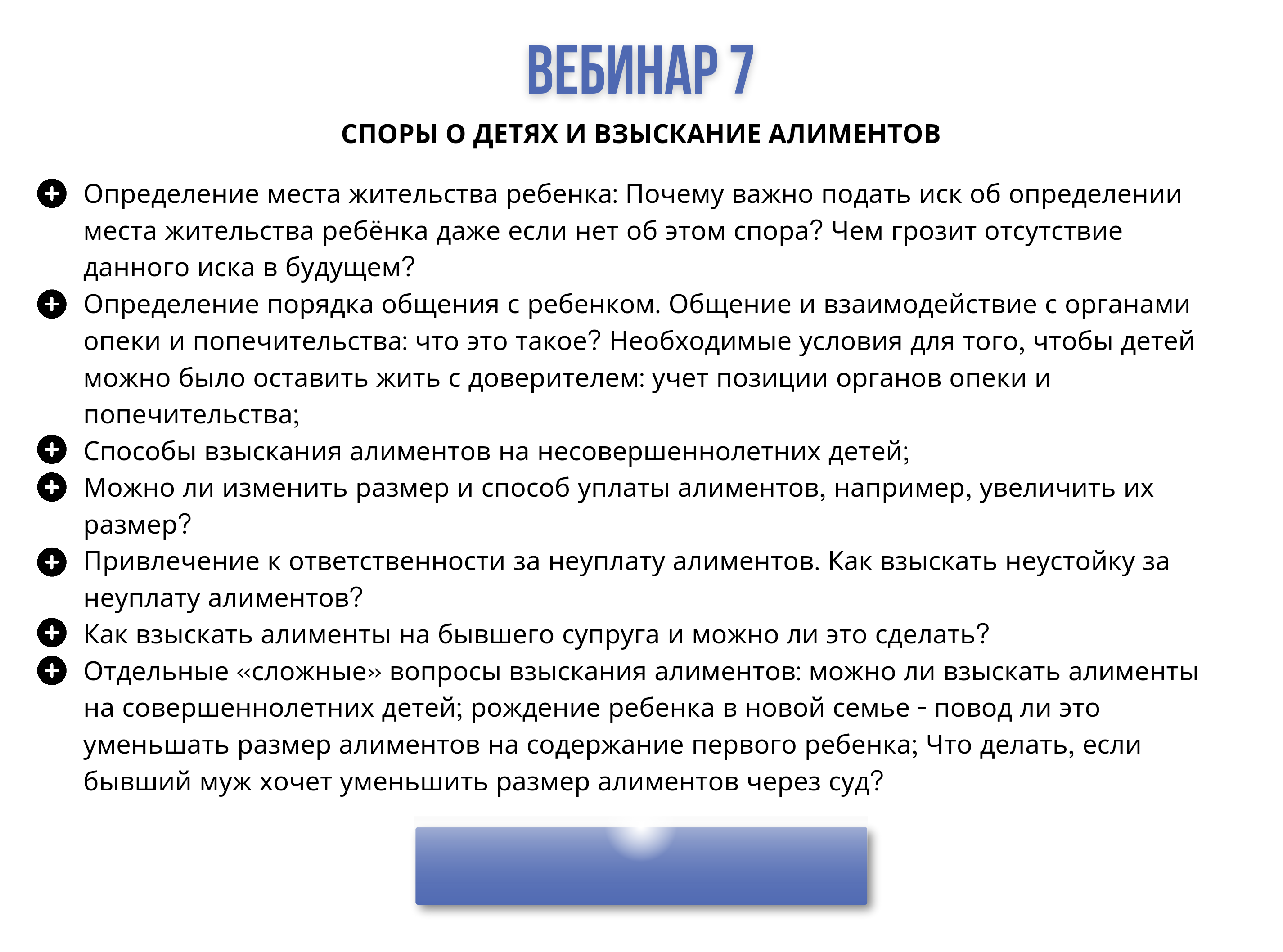 Каждый вебинар включает в себя: видео урок и рабочий конспект к уроку с образцами документов.